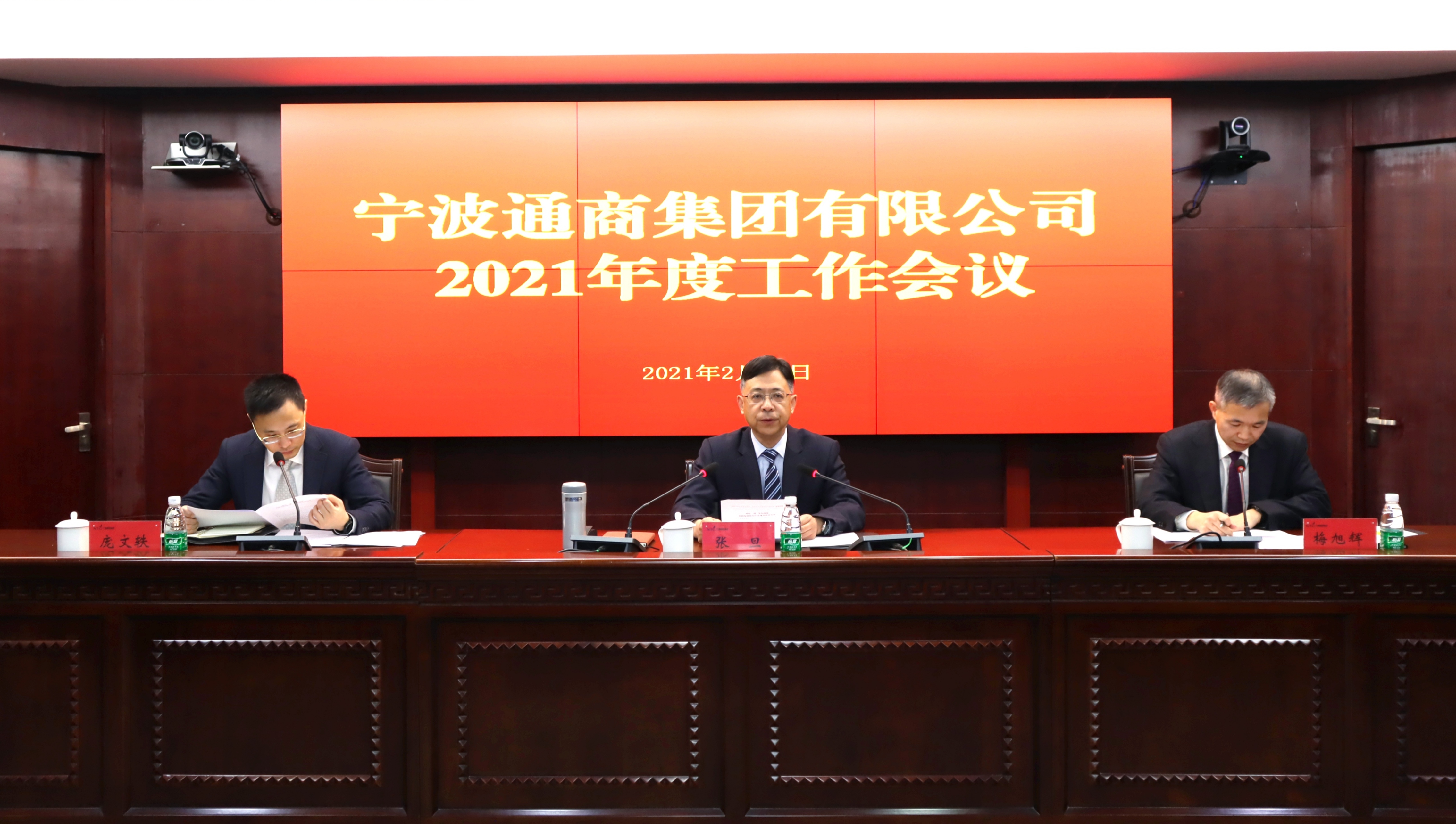 2021年2月22日上午,宁波通商集团召开2021年度工作会议,集团党委副书记、副董事长、总经理张旦作了题为《对标一流争先创优,在新发展格局中实现高质量发展》的工作报告,强调在十四五的开局之年,必须冲出起跑线、跑出加速度,加快建设高水平国有资本投资运营集团,以优异成绩庆祝建党100周年。集团党委副书记、副总经理梅旭辉主持会议并提要求,集团领导班子成员、本级全体干部员工和各子企业中层以上干部及员工代表参加了会议。