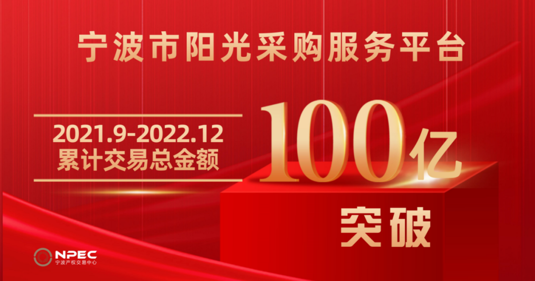 2022年12月7日,宁波通商集团子企业宁波产权交易中心搭建的宁波市阳光采购服务平台(下称:“平台”)累计成交金额正式突破100亿。