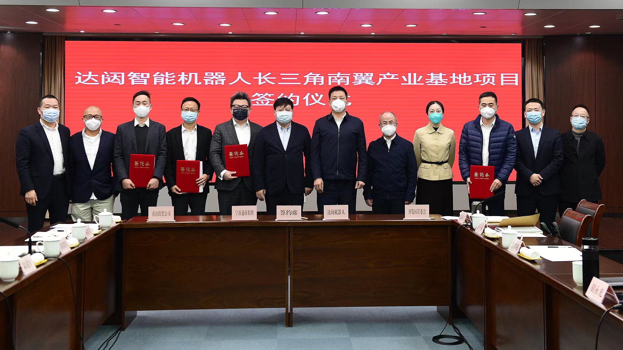 2022年12月21日上午,达闼机器人在奉化区落地建设长三角南翼智能机器人产业基地项目暨宁波通商基金有限公司联合奉化区国资平台共同投资达闼机器人项目正式签约。奉化经济开发区管委会主任汪一恒、通商基金总经理苏伟军、甬山投资董事长赵新丰、达闼机器人执行董事兼首席财务官庄家栋作为各方代表签约。