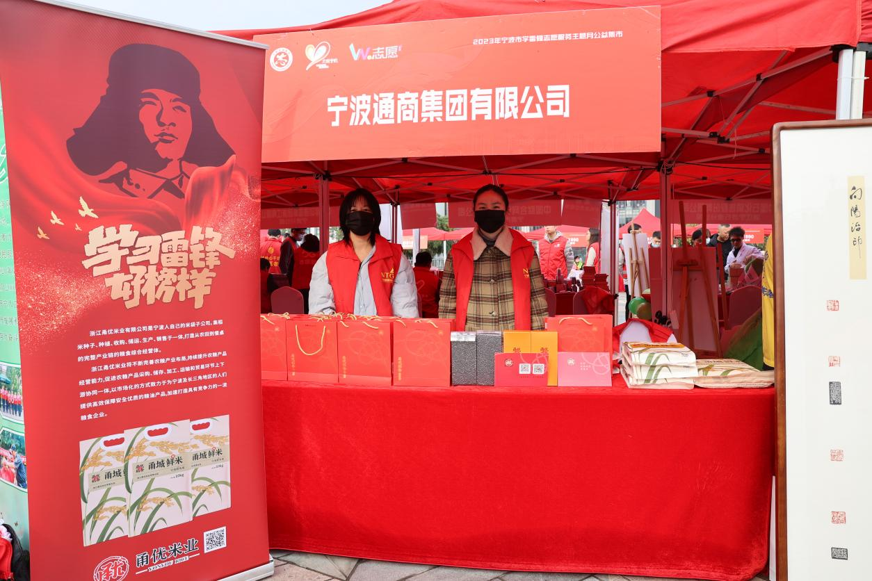 在活动现场,宁波通商集团志愿者服务团队在广场上设摊,为市民群众提供宁波自有大米品牌——甬优系列大米的宣传推广和试吃活动。卓越的品质和实惠的价格很快吸引到了大批前来购买的民众,商品很快被抢购一空。义卖所得资金已全部捐至宁波市志愿服务基金会。